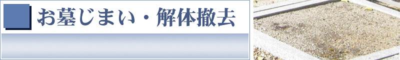 お墓じまい・解体撤去 「お墓の跡継ぎがいない」「実家の墓が遠方にあるため、お墓じまいをして改葬したい」など、さまざまなご事情でお墓じまいをされたい方は、お気軽にご相談ください。取り外したご先祖様のお墓も丁寧に取り扱うことを大切に考えています。 京都一円、細やかな事も気持ちよくご対応します